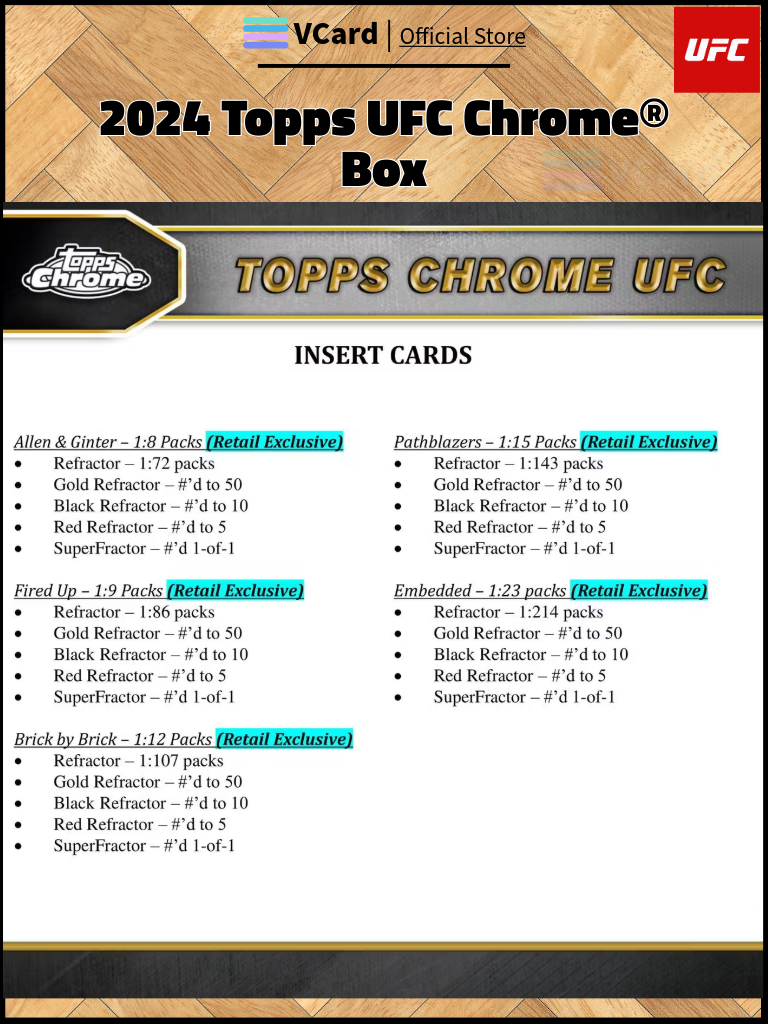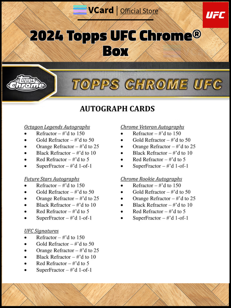 ★ Aaand Now!!! For those in attendance, and UFC fans watching around the world, this is the moment you’ve all been waiting for! Topps Chrome UFC is back!! Featuring a plethora of autographs, inserts, refractors and other worldly case hit chases!